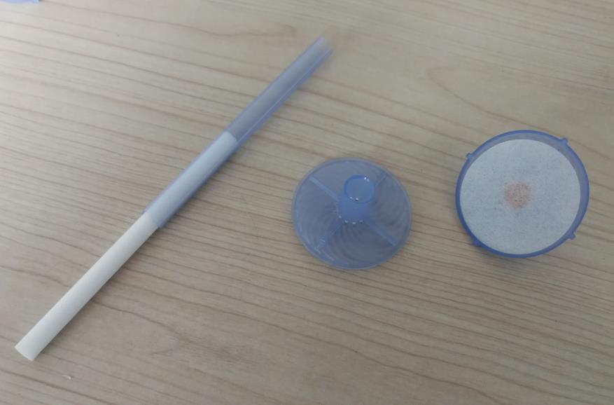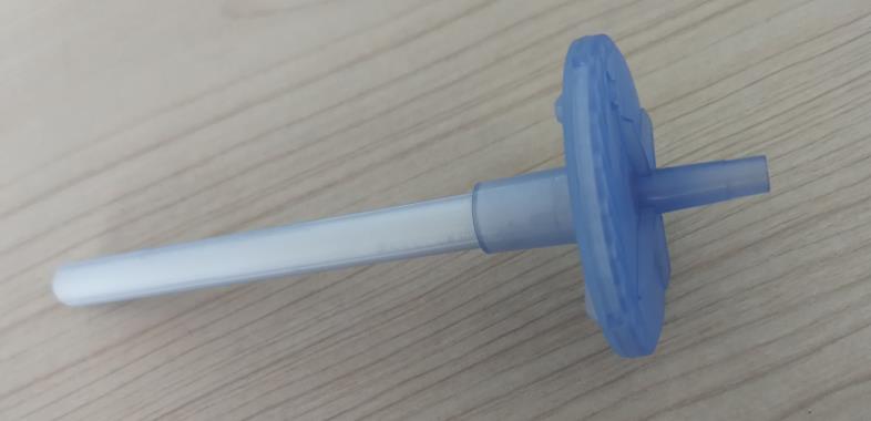 本項目共完成6個零件的自動裝配,其中有2個注塑件上傘蓋下傘蓋,一PVC片直徑11.5mm厚0.9mm名稱分流片,一直徑40mm無紡布片名稱濕化體,一段導(dǎo)水殼一段導(dǎo)水芯。自動裝配過程:轉(zhuǎn)盤式多工位方式,涉及到兩個塑料料扣合,導(dǎo)水芯導(dǎo)水殼插裝,濕化體模切后自動就位。